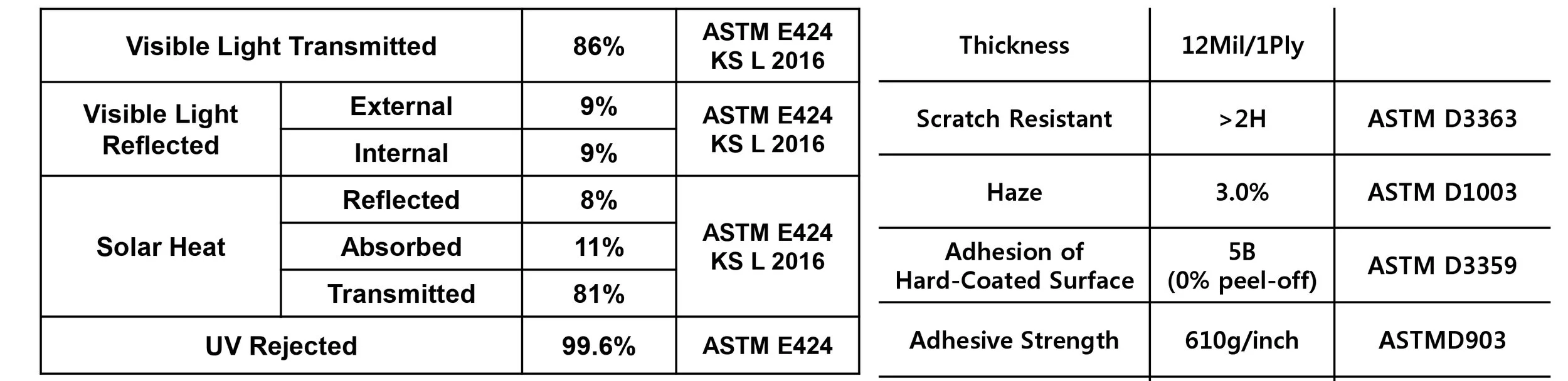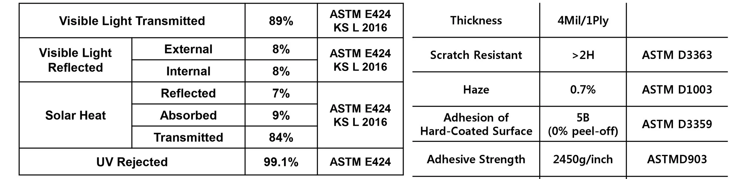 Adhesive: Optical Grade PET Film (100µm ± 5µm)